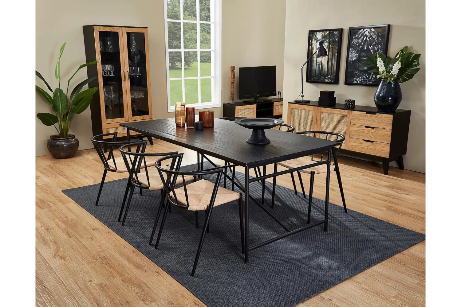 Antwerp er et moderne spisebordssæt med smukke detaljer. Sættet består af et aflangt spisebord i sortmalet fyrretræ og seks tilhørende Winston spisebordsstole. Spisebordet har en højde på 73 cm, en dybde på 100 cm og en længde på 200 cm. Spisebordsstolene