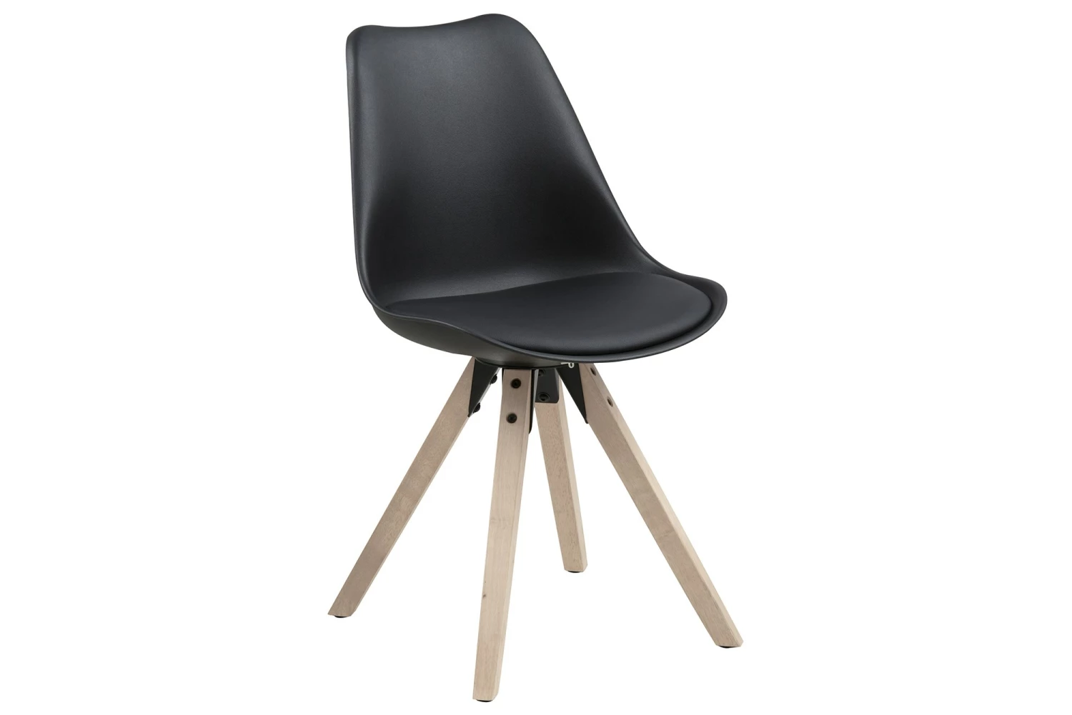 En af vores mest populære spisestuestole er denne fra vores Enna-serie. Stolen er i sort plast med polstret sort sæde og hvidolieret massive egetræsben. Stolen måler 85 cm i højden, 55 cm i dybden og 48,5 cm i længden. Se hele vores populære Enna-serie he