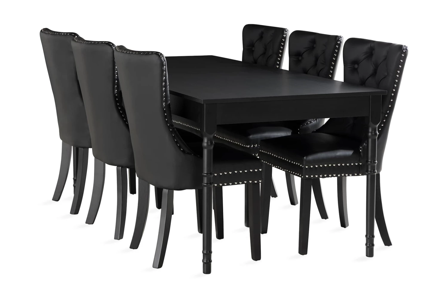 Erin Spisebordssæt M. 6 Bergviken Stole, Sort