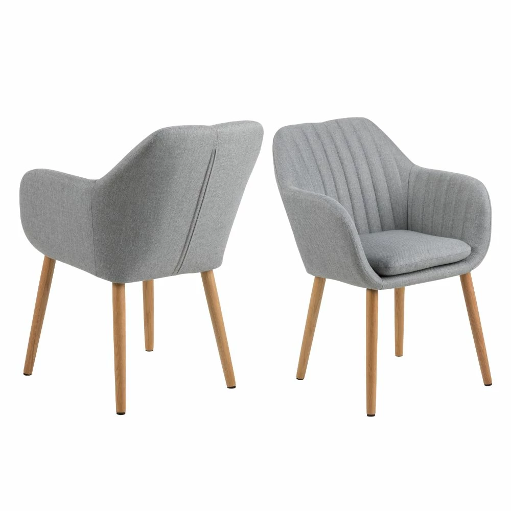 Nora stolen i lysgråt slidstærkt møbelstof på oliebehandlede egetræ, har et let design og kan bruge som hjørne stol eller ved et spisebord ? Men pas på, med så godt et sæde og de små armlæn kommer i til at kæmpe om siddepladserne.