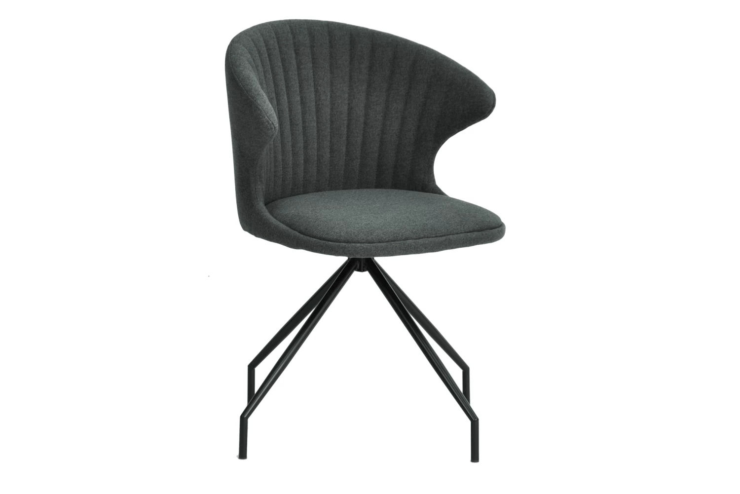 Flot klassisk spisestuestol med en perfekt siddekomfort. Monteret med antracitgråt betræk, og stel med drejefunktion i sortlakeret metal.