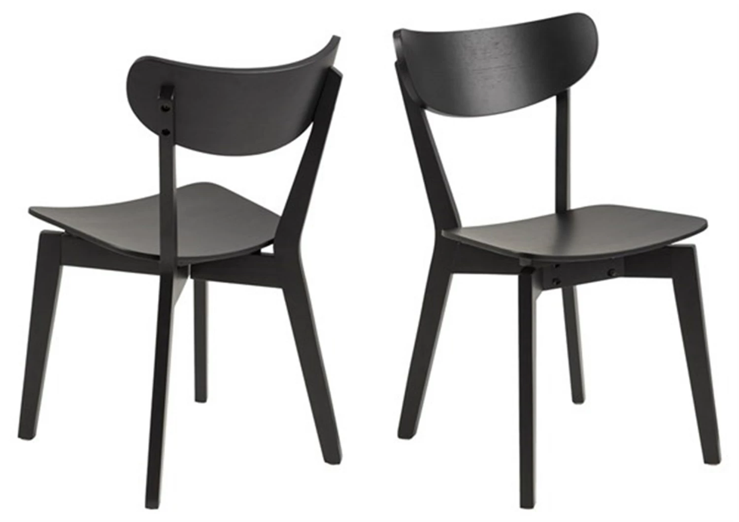 Spisestuestol med sæde og ryg i sortbejdset egefinér og ben i sortlakeret heveatræ. Stolen måler 79,5 cm i højden, 55 cm i længden og 45 cm i dybden. Se alle vores spisestuestole her. Husk at møbler skal plejes og vedligeholdes for at sikre længst mulig l