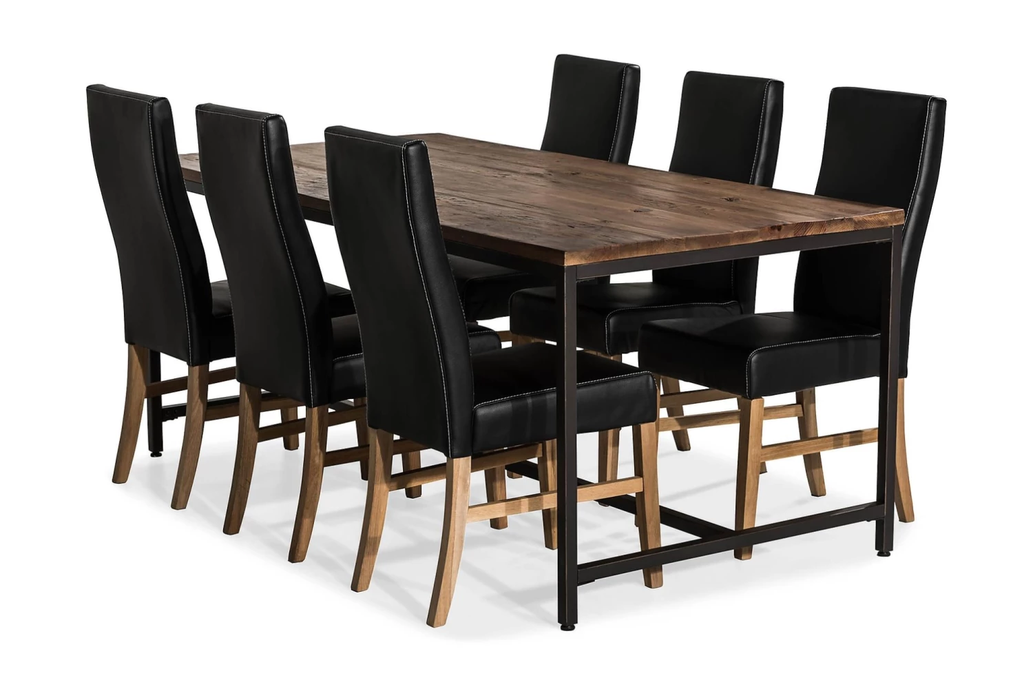 Wilmer spisebordssæt passer rigtig godt ind i det moderne og rustikke hjem. Spisebordet har et metalstel og en bordplade af voksbehandlet elm. Bordpladen er et smukt håndværk, som er fremstillet af over 100 år gamle døre og møbler, som med tiden har givet
